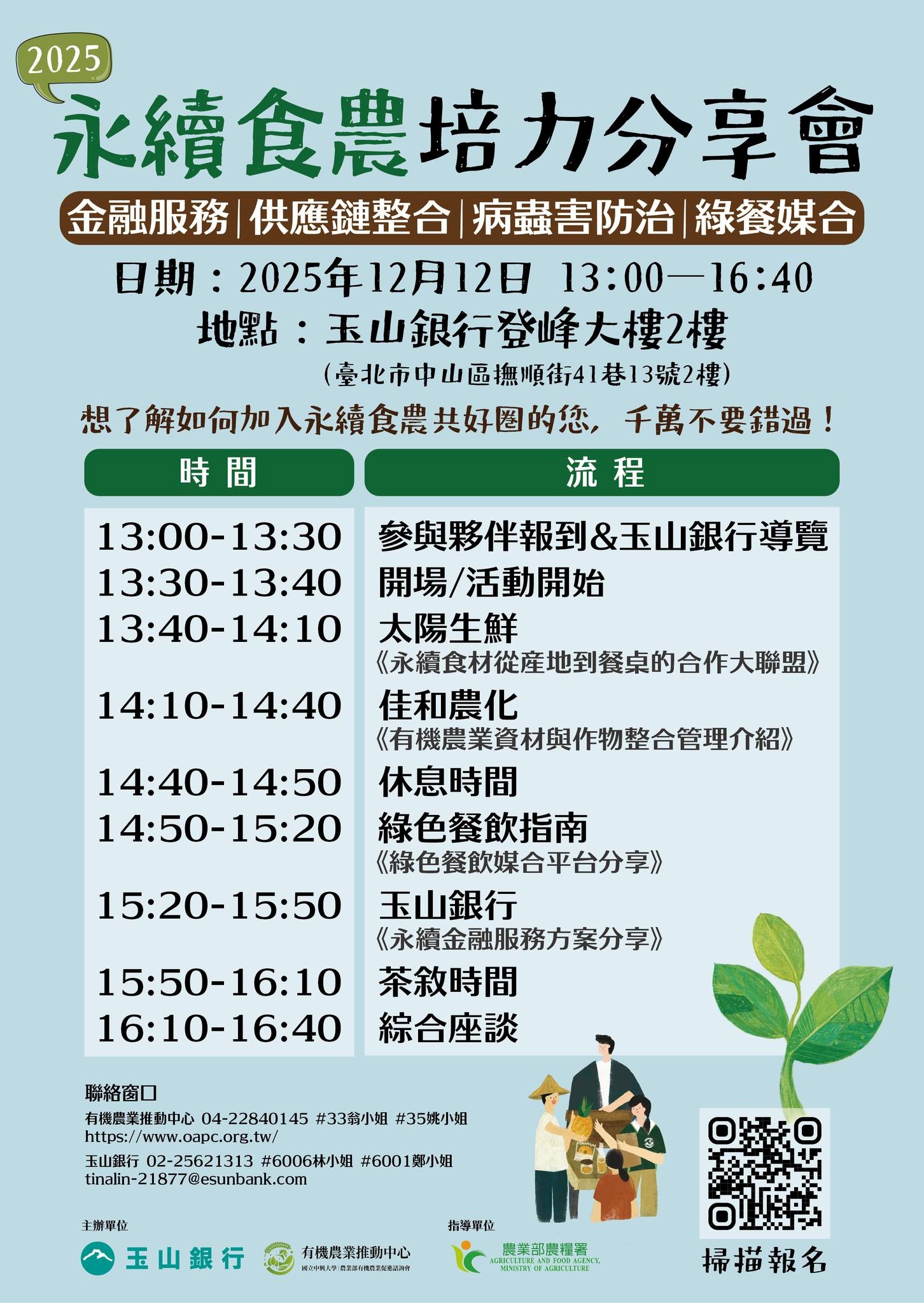 國立中興大學有機農業推廣中心>2025永續食農培力分享會