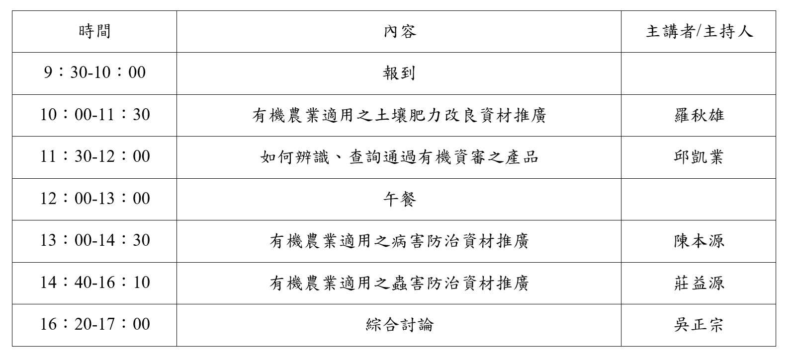 三、主辦單位:國立中興大學農產品驗證中心 有機資材審查部門