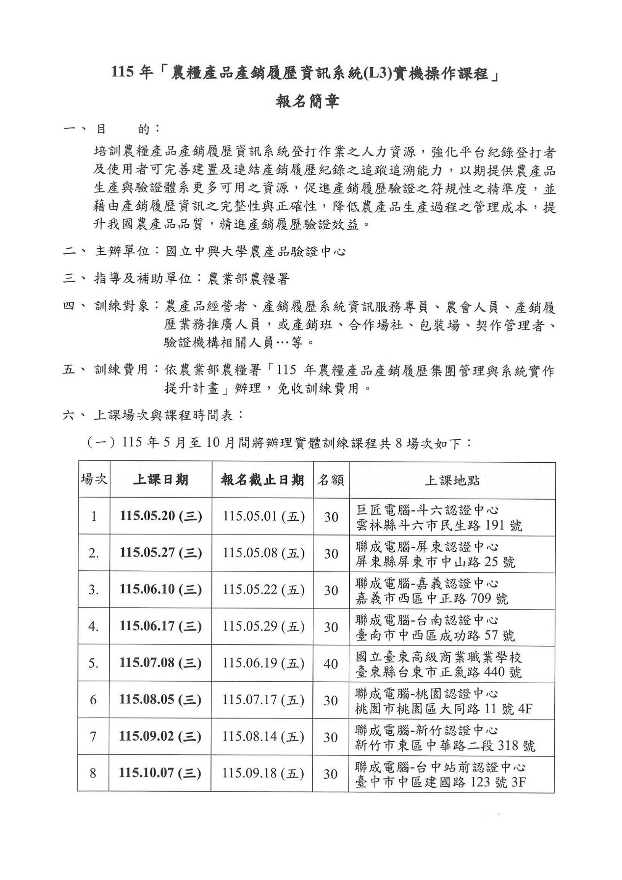 國立中興大學>>農糧產品產銷履歷資訊系統(L3)實機操作課程